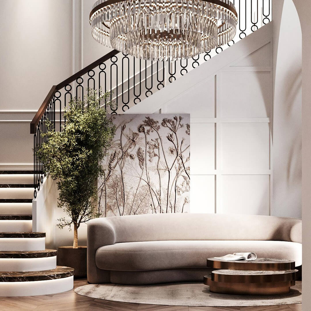 Резидентов особняка «Петровский» встречает лобби в стиле лучших фешенебельных отелей мира с выверенными цветовыми решениями, балансом мягких оттенков бежевого и коричневого. Авторские художественные фрески на стенах, испанский керамогранит, гипсовая лепнина, а также латунное обрамление дверных и оконных откосов - смелые решения, призванные подчеркнуть статус дома.